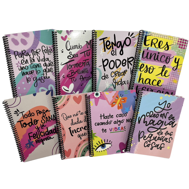 Cadernos A5 40 hojas rayadas paq.x8 surtidos