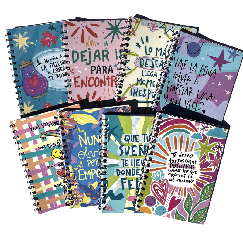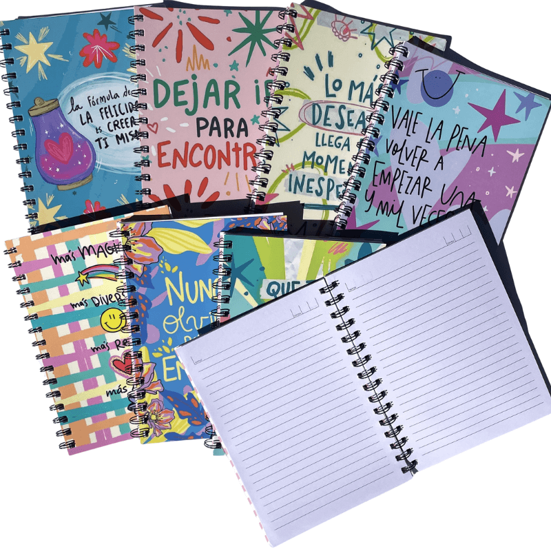 Cuadernos A5 tapa semirrígida 80 hojas rayadas anillado doble alambre Paq.x 8 surtido