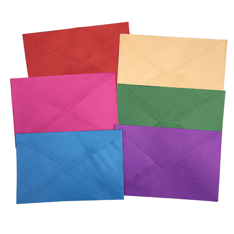 Sobres 19×12,5 color violeta-turquesa-rojo-fucsia-amarillo-verde paq.x120 surtidos